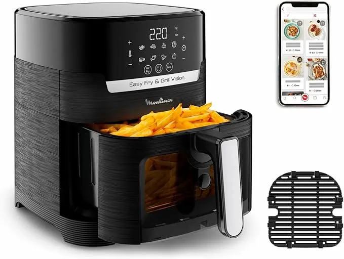 - Moulinex Easy Fry & Grill Vision EZ506820 — capacité ~4,2 L, jusqu’à 6 personnes, 8 programmes automatiques, écran tactile.