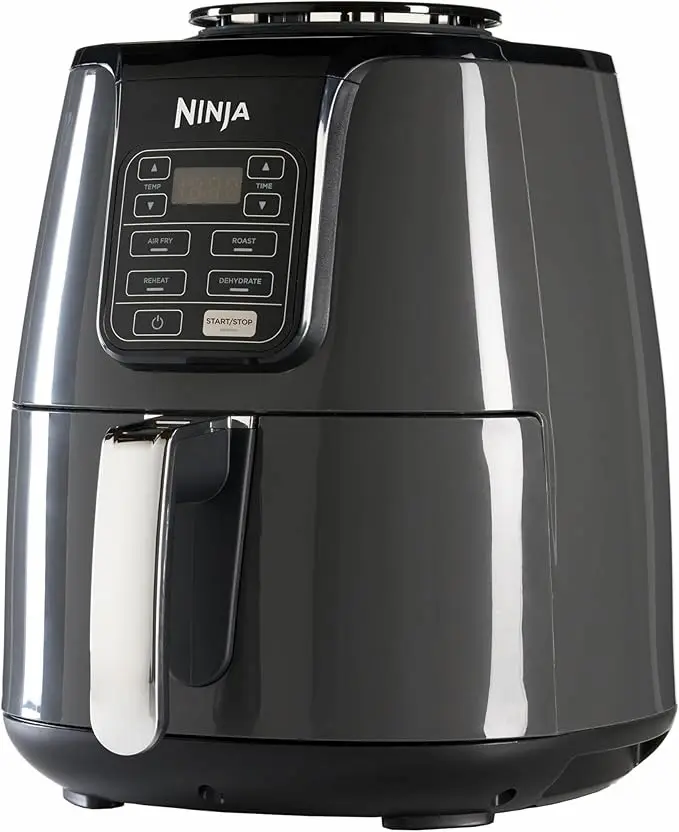 - Ninja Air Fryer AF100EU — 3,8 L, format compact, 4-en-1 (frire, rôtir, déshydrater, cuire), panier antiadhésif lavable.