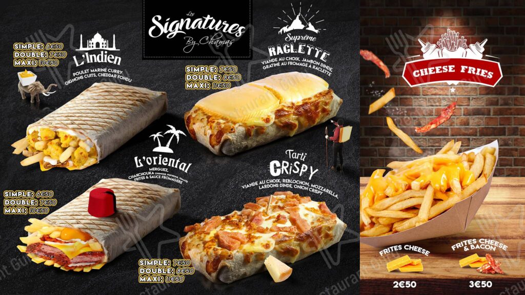 Le menu de Chamas Tacos regorge de recettes généreuses pensées pour les food lovers. Chaque french tacos peut être personnalisé pour créer une explosion de saveurs unique.