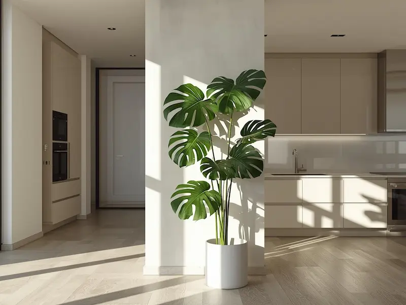 Le monstera est devenu un incontournable des cuisines modernes. Il apprécie la lumière naturelle et supporte bien l’humidité ambiante. Placé dans un coin dégagé, il structure l’espace et apporte du cachet.