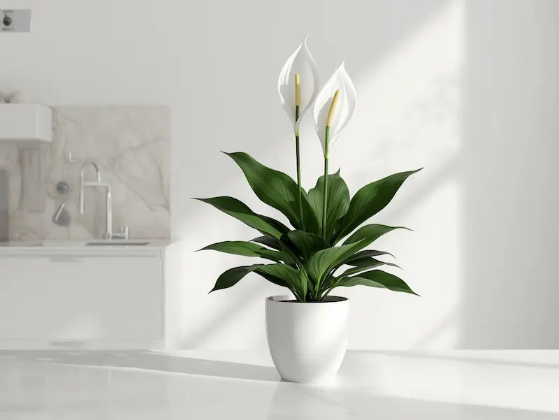 Le spathiphyllum apprécie particulièrement les pièces humides, ce qui en fait une bonne option pour la cuisine. Il apporte une ambiance apaisante avec ses feuilles élégantes et ses fleurs blanches, tout en restant simple à entretenir.