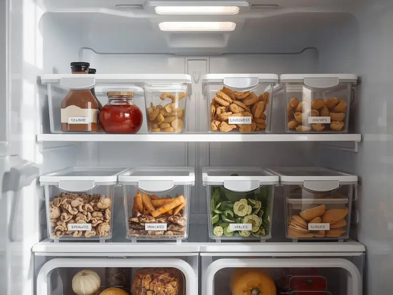 Si je devais choisir une seule astuce, ce serait celle-là. Les bacs (ou boîtes) rendent l’organisation frigo évidente : tu attrapes un bac, tu vois, tu ranges, tu nettoies plus vite. C’est le meilleur “gain de place” sans changer ton frigo.