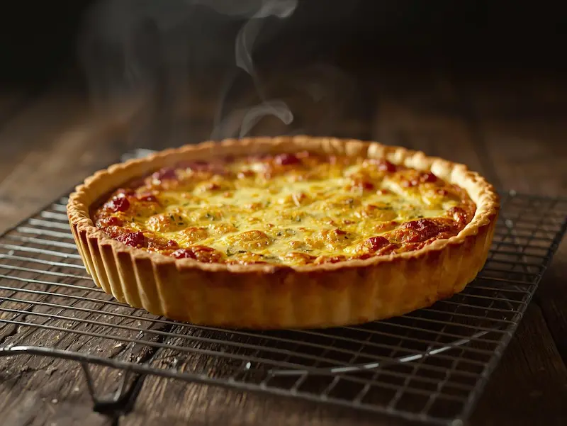 Après la cuisson, je laisse toujours la quiche reposer quelques minutes. C’est souvent à ce moment-là que les souvenirs remontent, quand la cuisine se remplit de cette odeur familière et que l’on sait déjà que le repas sera simple et réussi.