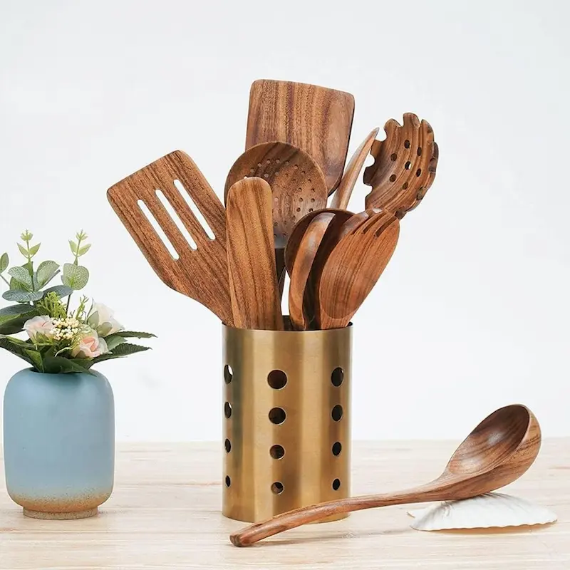 Ustensiles de cuisine en bois en teck – set Woodenhouse 10 pièces