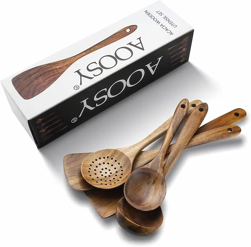 Ustensiles de cuisine en bois AOOSY – set 5 pièces entrée de gamme